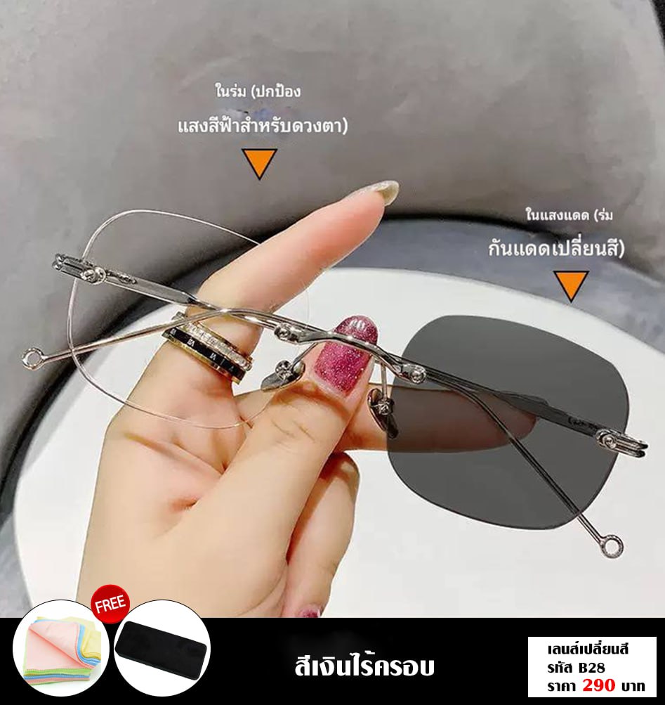 เลนส์ใสเมื่ออยู่ในร่มเปลี่ยนสีออโต้เมื่อโดนแดด