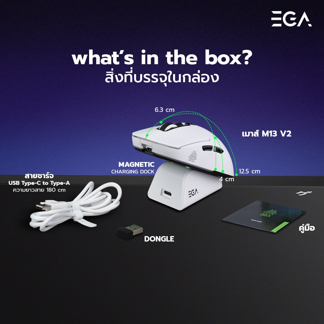 ขนาดเมาส์ (ยาว x กว้าง x สูง): 125 × 63.5 × 40.5 มม.