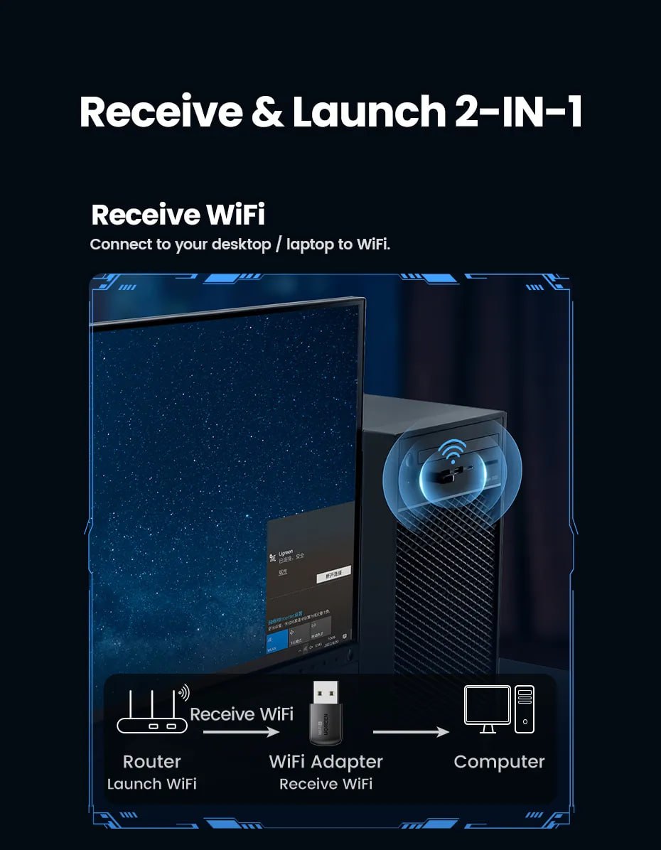 ใช้เพื่อรับสัญญาณไวไฟ สำหรับอุปกรณ์เช่นคอมที่ไม่มีไวไฟในตัวเท่านั้น ไม่ใช่ตัวกระจายสัญญาณไวไฟ