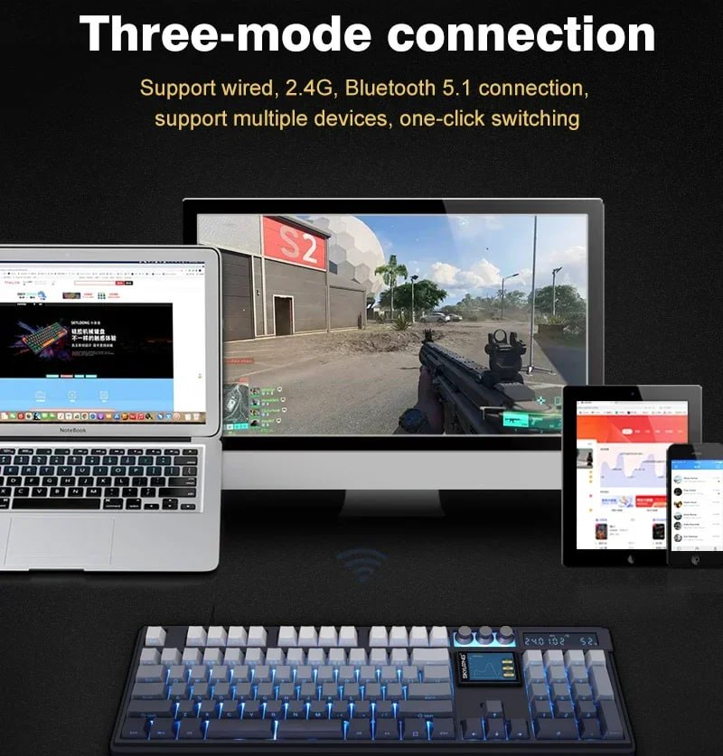 การเชื่อต่อ 3 โหมด สาย/ไร้สาย 2.4G/Bluetooth