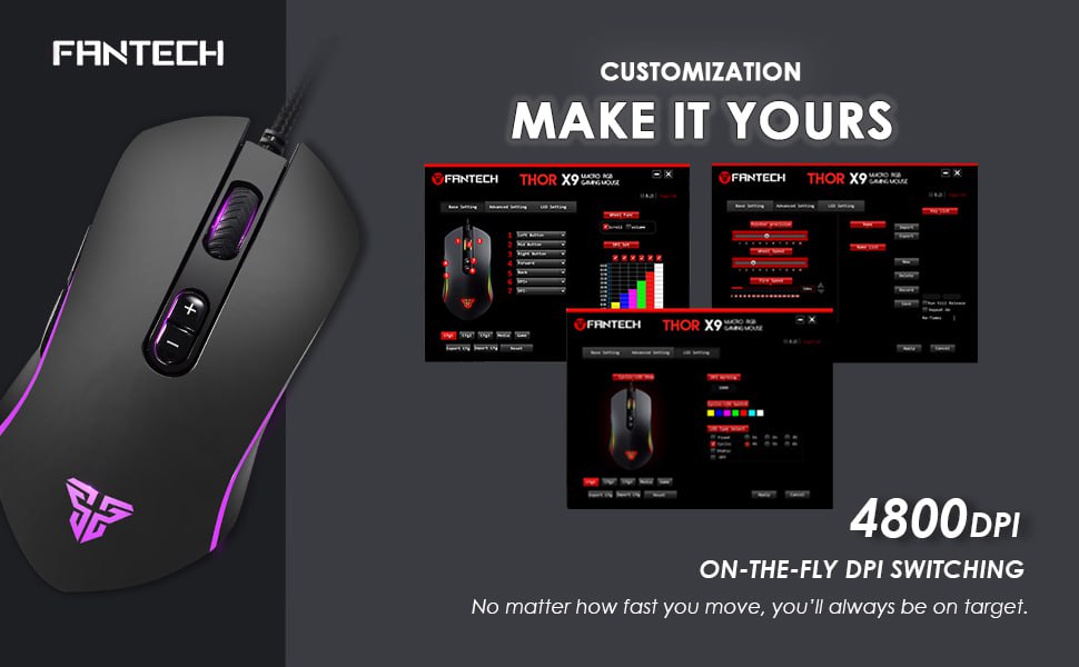 ปรับ DPI ได้ 200-4,800 DPI ขณะใช้งาน